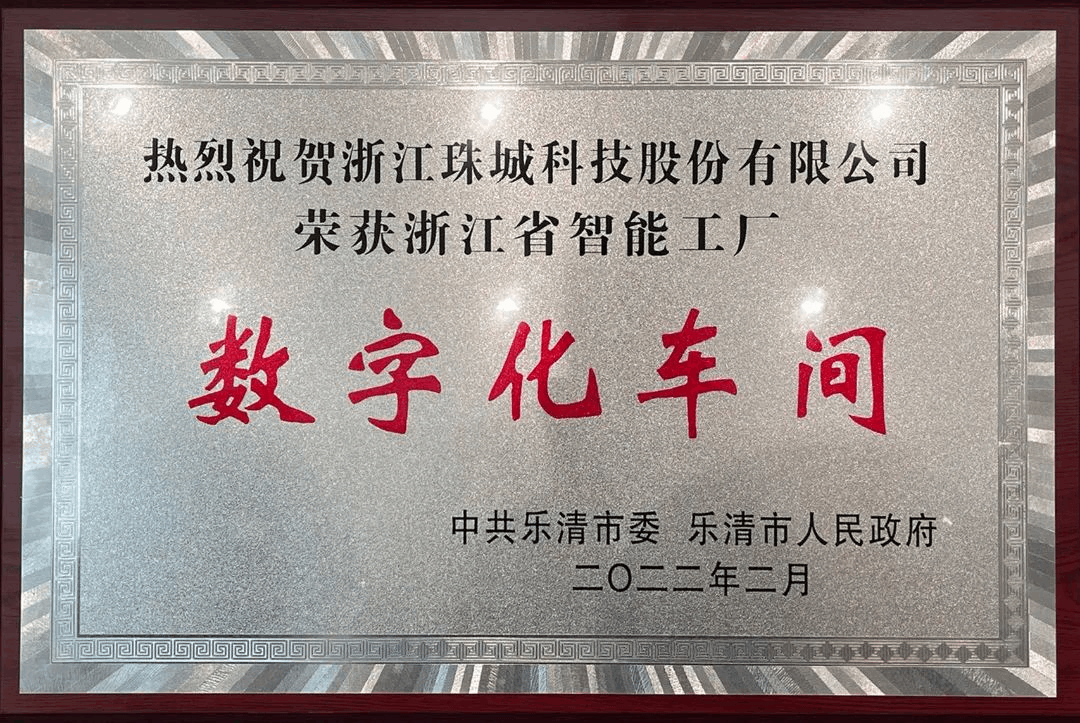 同時,浙江珠城科技股份有限公司在本次會議中還榮獲了“省智能工廠(數字化車間)”“省級新一代信息技術與制造業融合發展試點示范”“省AAA級‘守合同重信用’企業紅榜單”等榮譽并接受了表彰。